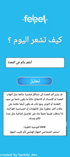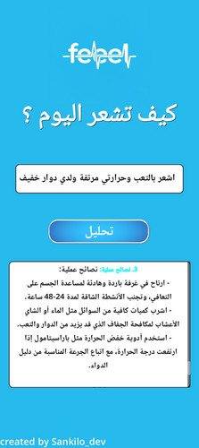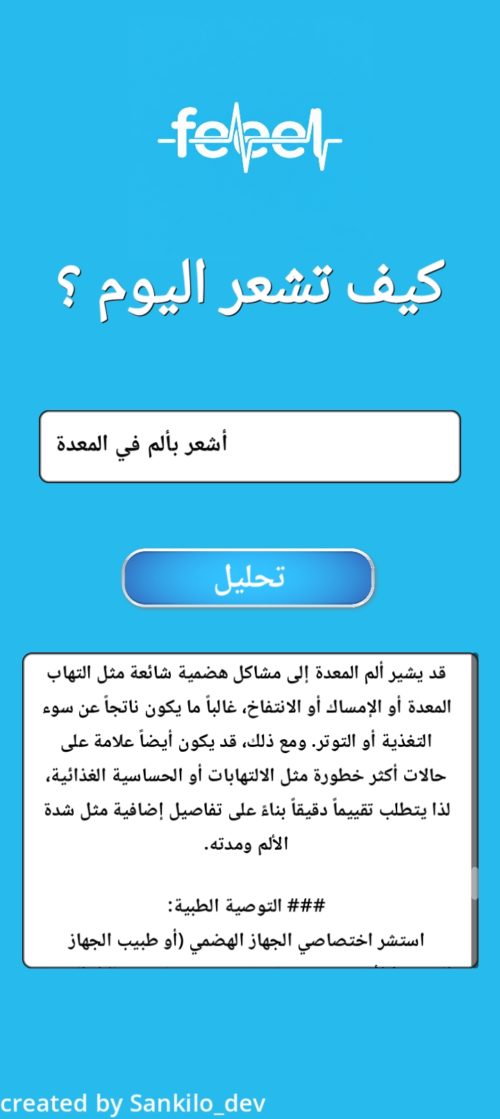 Feeel هو برنامج خفيف يستعمل الذكاء الاصطناعي لتحليل حالتك واحاسيسك كل ما عليك هو تحميل التطبيق واخبره بما تشعر وهو شوف يخبرك بشخيص عام لحالتك ونصائح لتحسينها